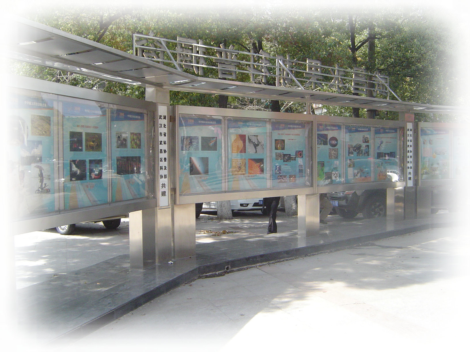 图片展示橱窗处于水果湖繁华的街区,附近聚集了大量政府机关企事业团体和中小学校,街区人流量大,平均每天超过2万人,展览受到附近单位工作人员以及武汉市民的积极响应,参观者络绎不绝,反响热烈,深受欢迎。