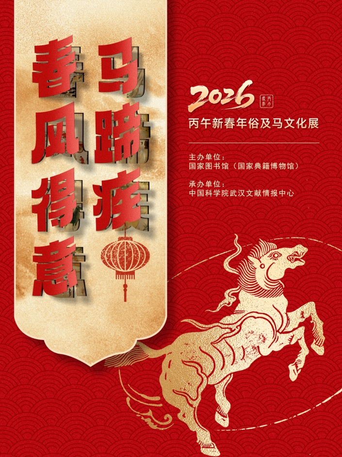 在2026丙午马年新春到来之际,中国科学院武汉文献情报中心将举办“策马迎春 阅享新年”春节主题活动展览,欢迎广大读者前来参观!